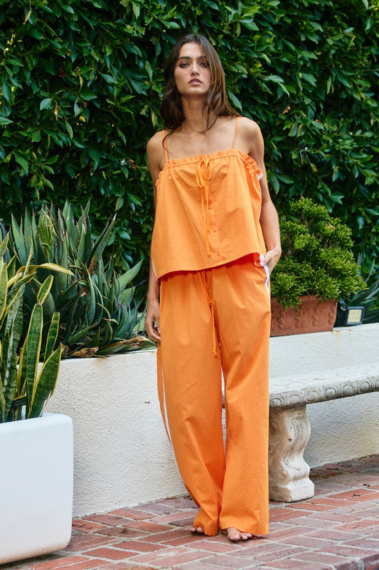Cotton Camisole & Wide-Leg Pant Set: ORANGE/WHITE