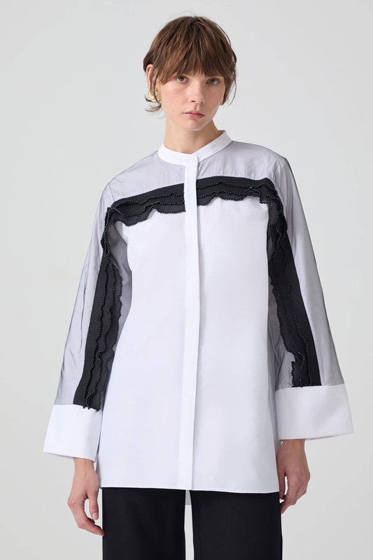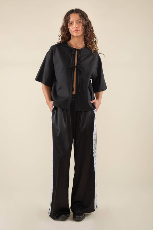 Nena Satin Lace Trim Track Pants: Black/Ivory