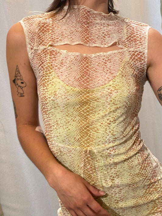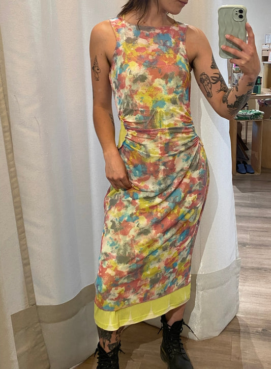 Leonor Aispuro - Mesh Watercolor Cutout Dress