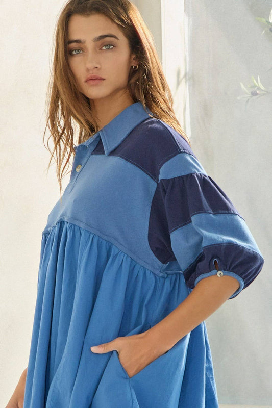 Billowy Shapeless Silhouette Rugby Mini Dress