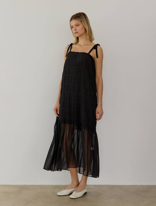 The Karolyn Dress | Shirred Maxi Dress with Tie Straps: BLACK