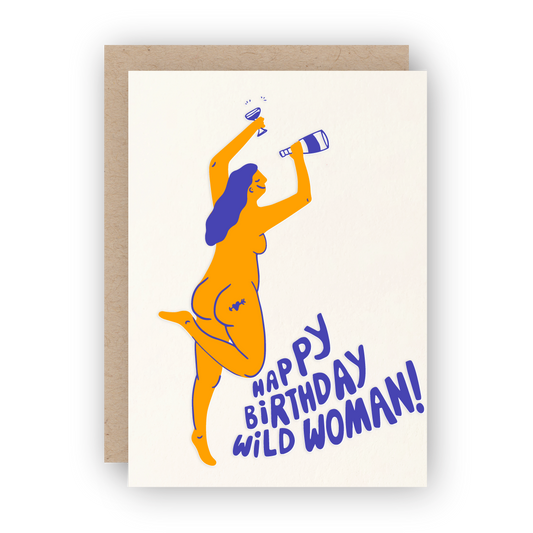 Happy Birthday Wild Woman Letterpress Greeting Card