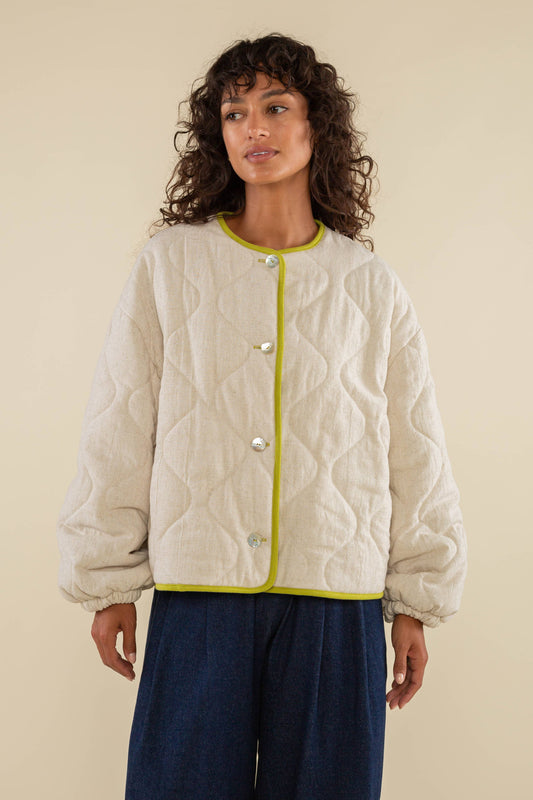 Nubi Boxy Quilted Jacket: Natural/Green Apple