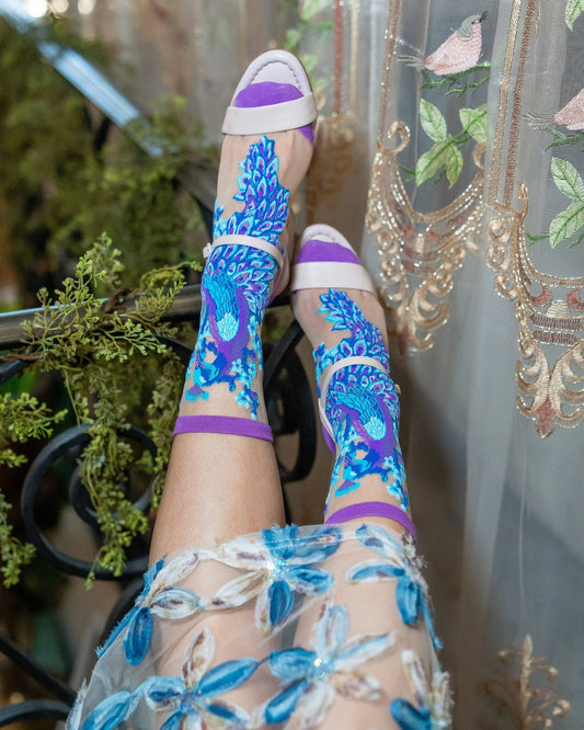 Aquamarine Peacock Sheer Crew Sock