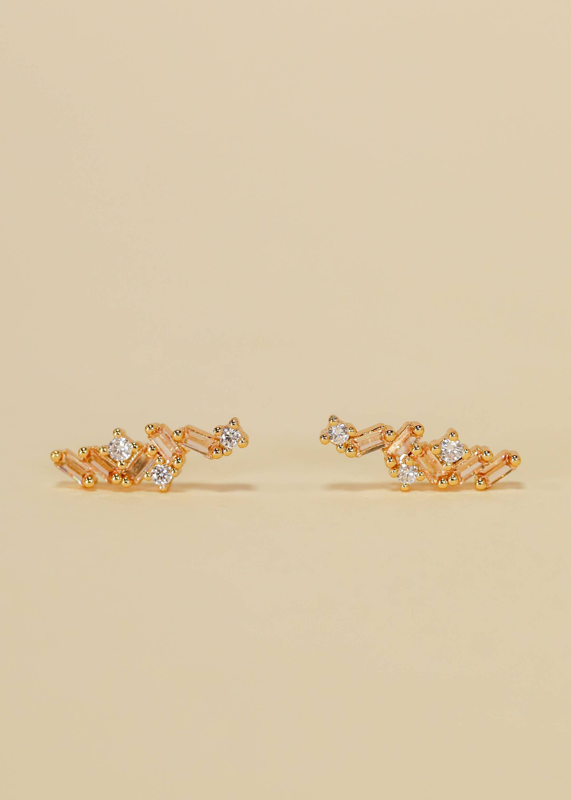All the sparkle you need for a night out or special occasion. Delicate CZ stones stack beautifully on a baguette set stud.