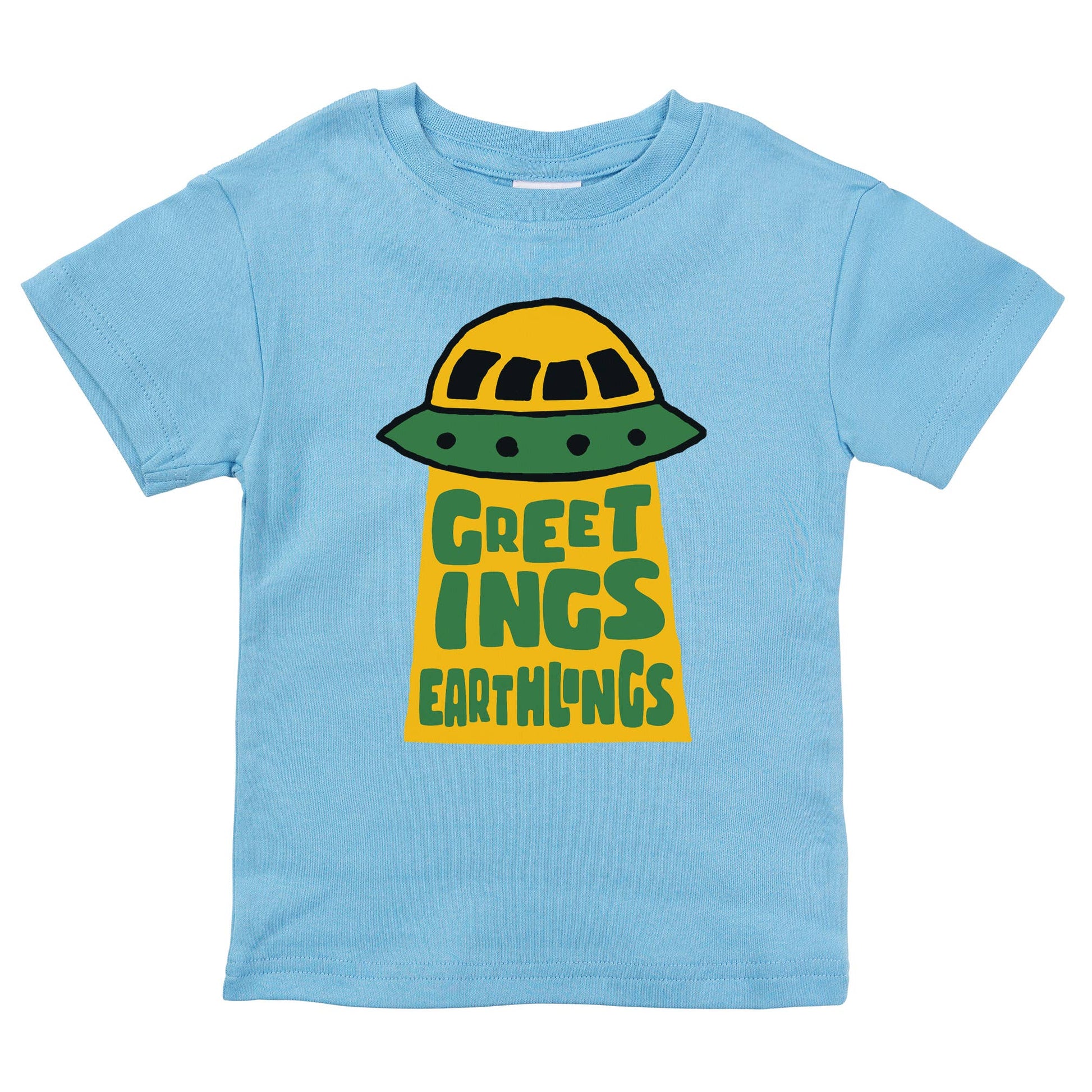 Greetings Earthlings UFO Alien Space Ship Kids Toddler Shirt: Blue
