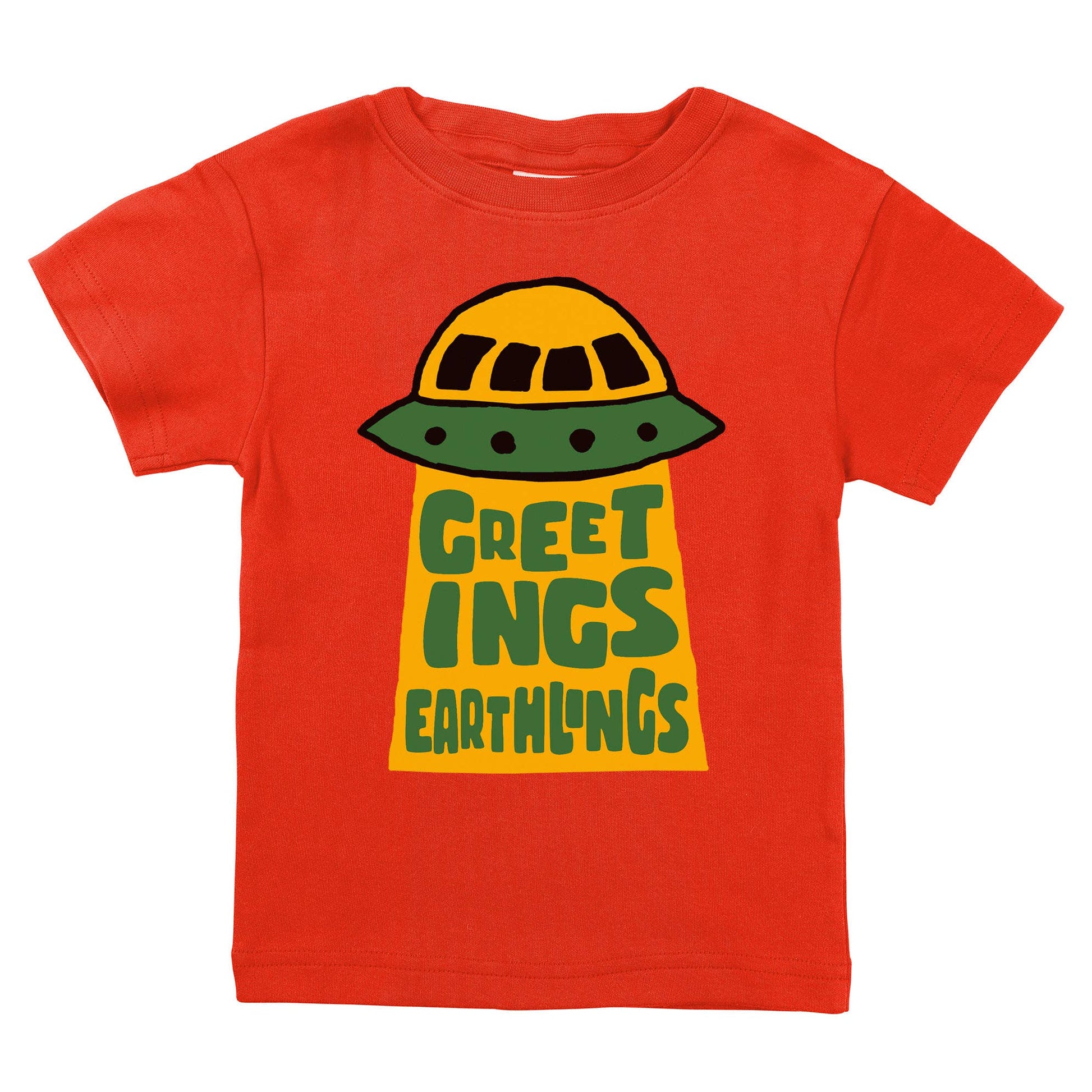 Greetings Earthlings UFO Alien Space Ship Kids Toddler Shirt: Red