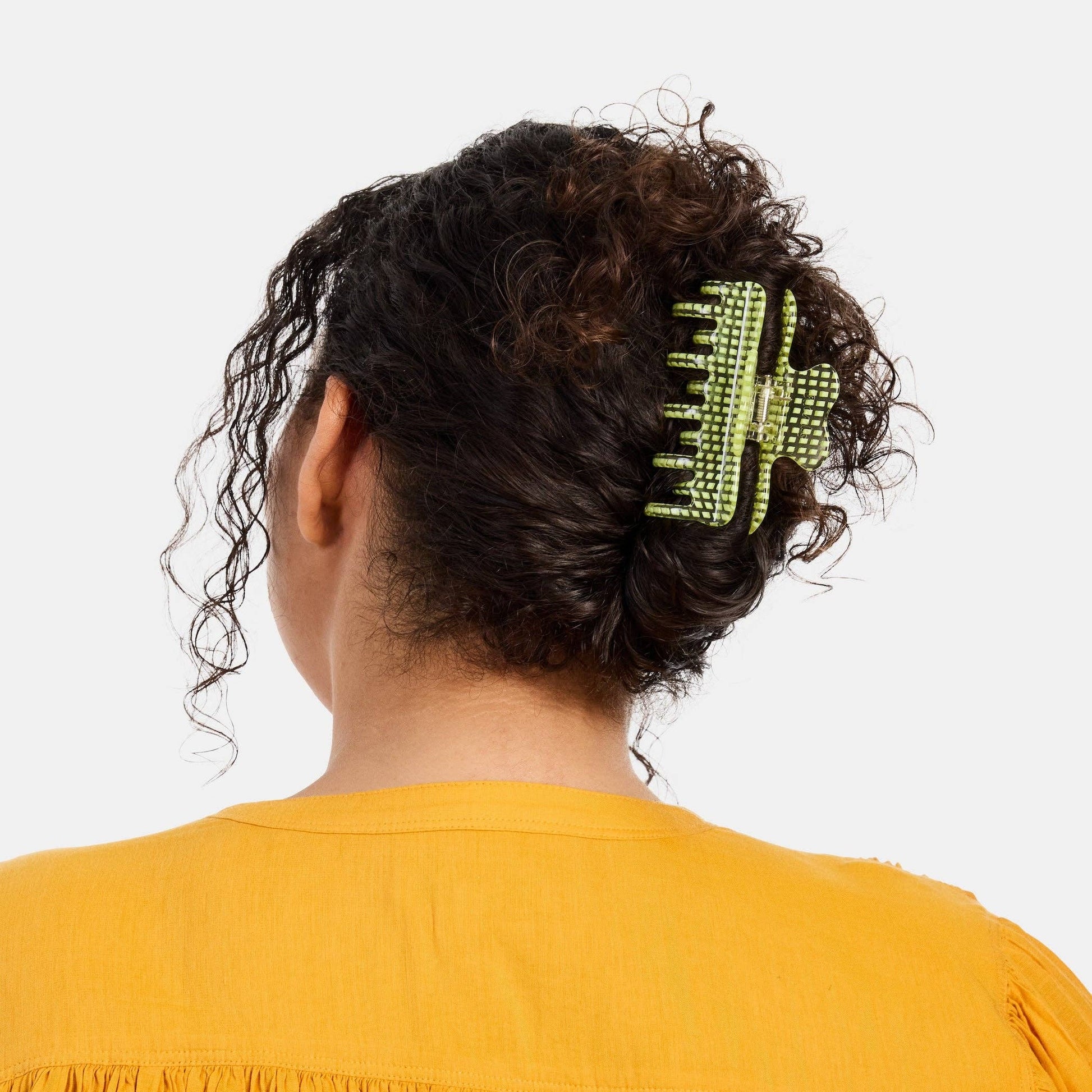 This claw has a double row of teeth for an extra secure hold. Works with all hair types and great for fine or slippery hair.