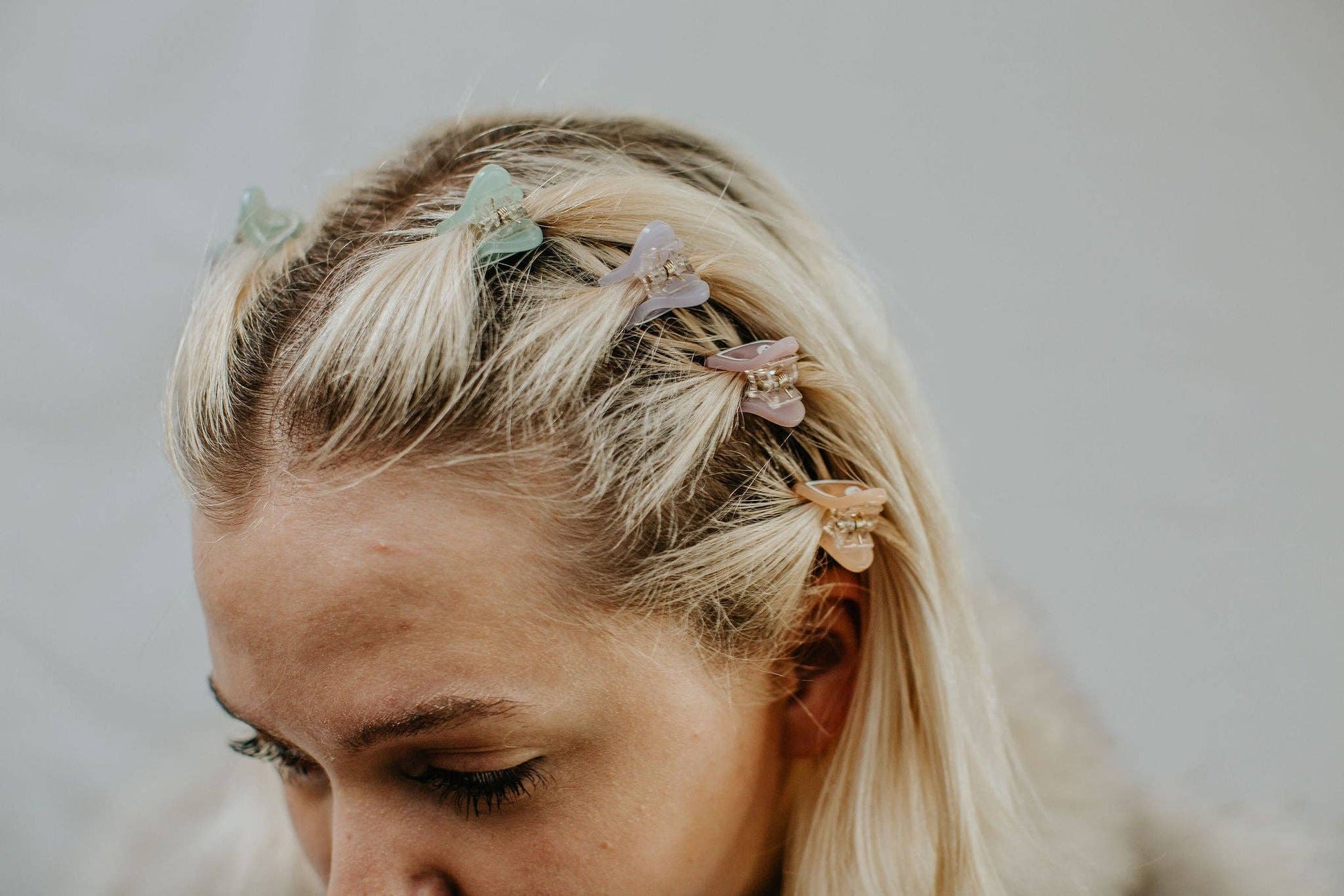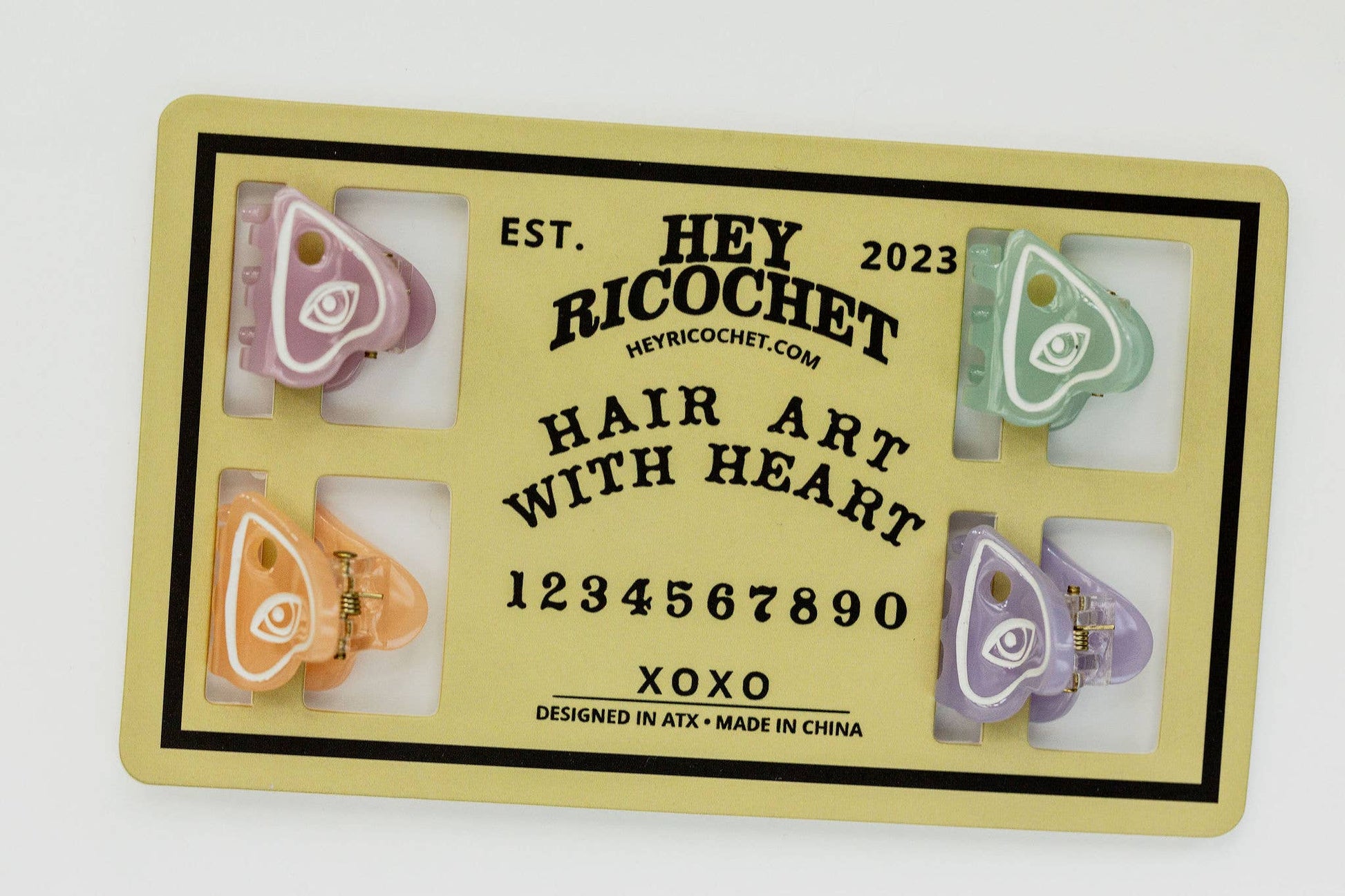 The Tiny Planchette Clips are made from pastel, jelly acetates offset with engraved white details. These mini clips are ideal for spicing up some braids or space buns, or putting on the smallest magic makers.