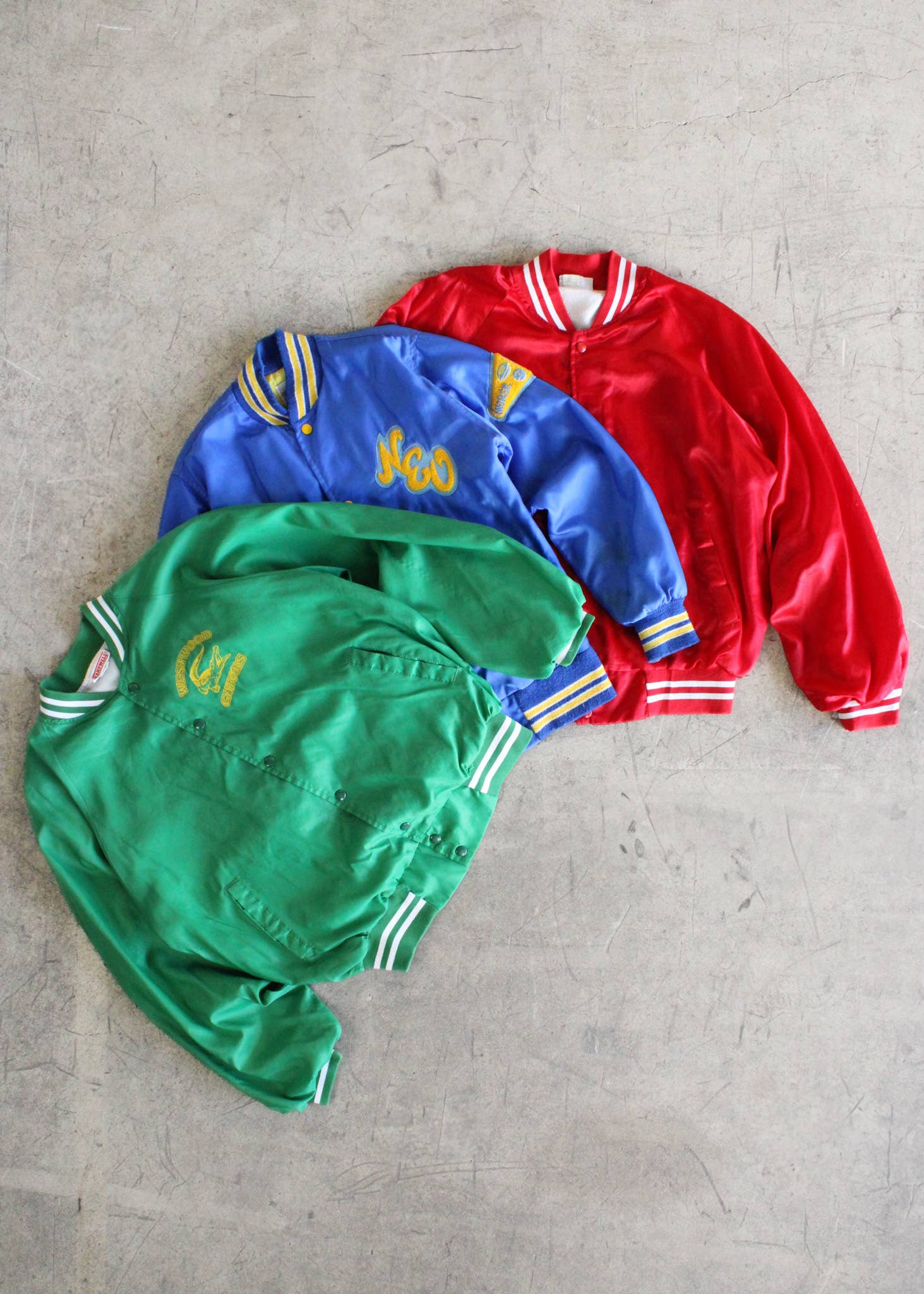 A bundle of our Vintage Baseball Jackets. Handpicked and curated, each piece is unique and pairs effortlessly with an active or casual vibe, no jacket is like the next.